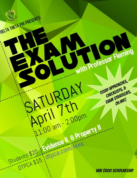 Come see how Fleming's approach, checklist, and strategy can help you master your law exams. Participants will receive 2 FREE mini - substantive outlines and 2 FREE writing checklists for Evidence II and Property II valued at $30 each FREE!